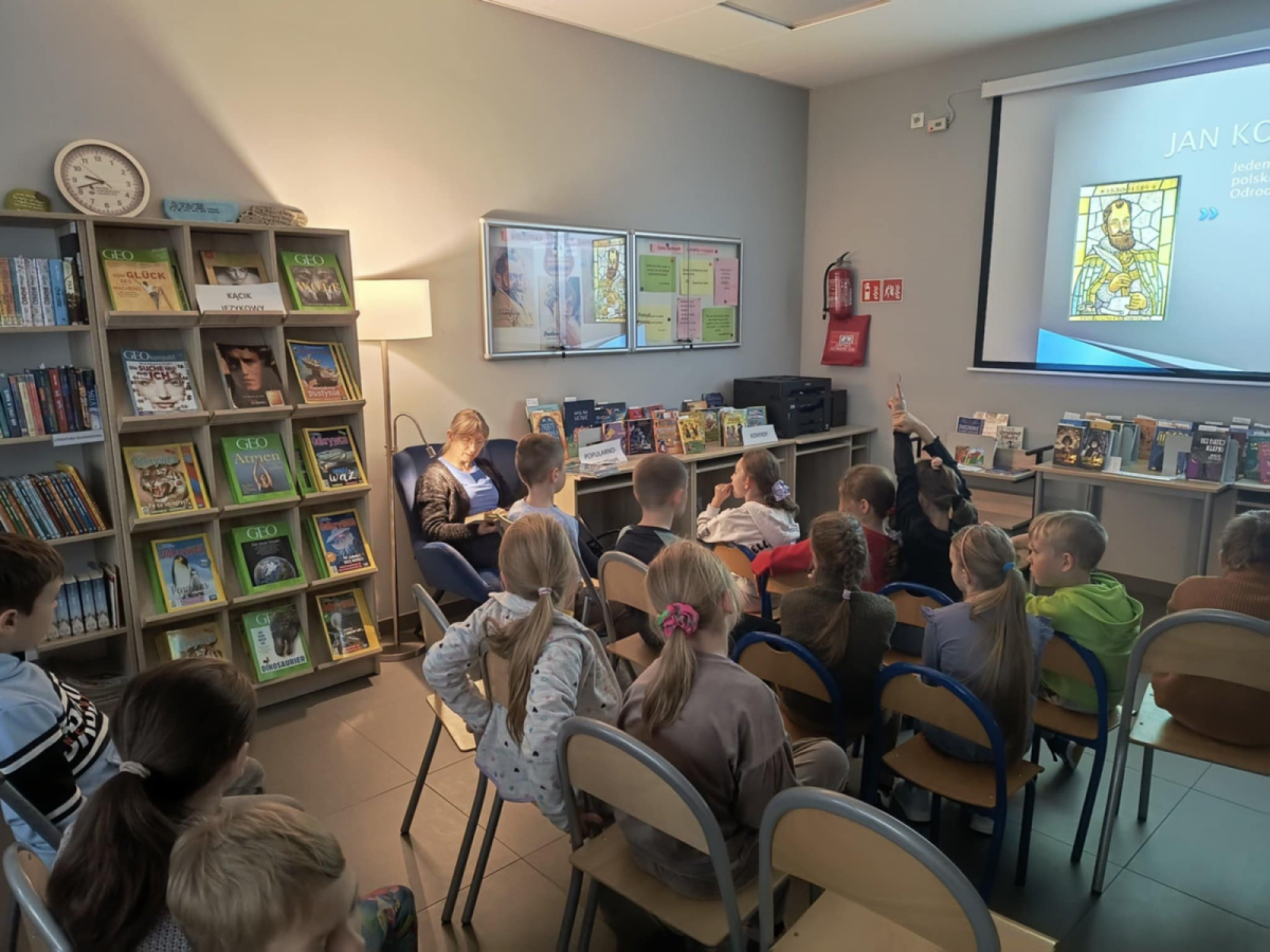 Lekcje z wychowawcą w szkolnej bibliotece stały się miejscem wspólnej refleksji. Obejrzeliśmy prezentację o dorobku Jana Kochanowskiego oraz czytaliśmy fragmenty książki Kto mi dał skrzydła autorstwa Joanny Porazińskiej. Książka przypomina, że „skrzydła” nie zawsze oznaczają lot naprawdę – czasem są to: odwaga, ciekawość świata, siła charakteru i możliwość rozwoju.