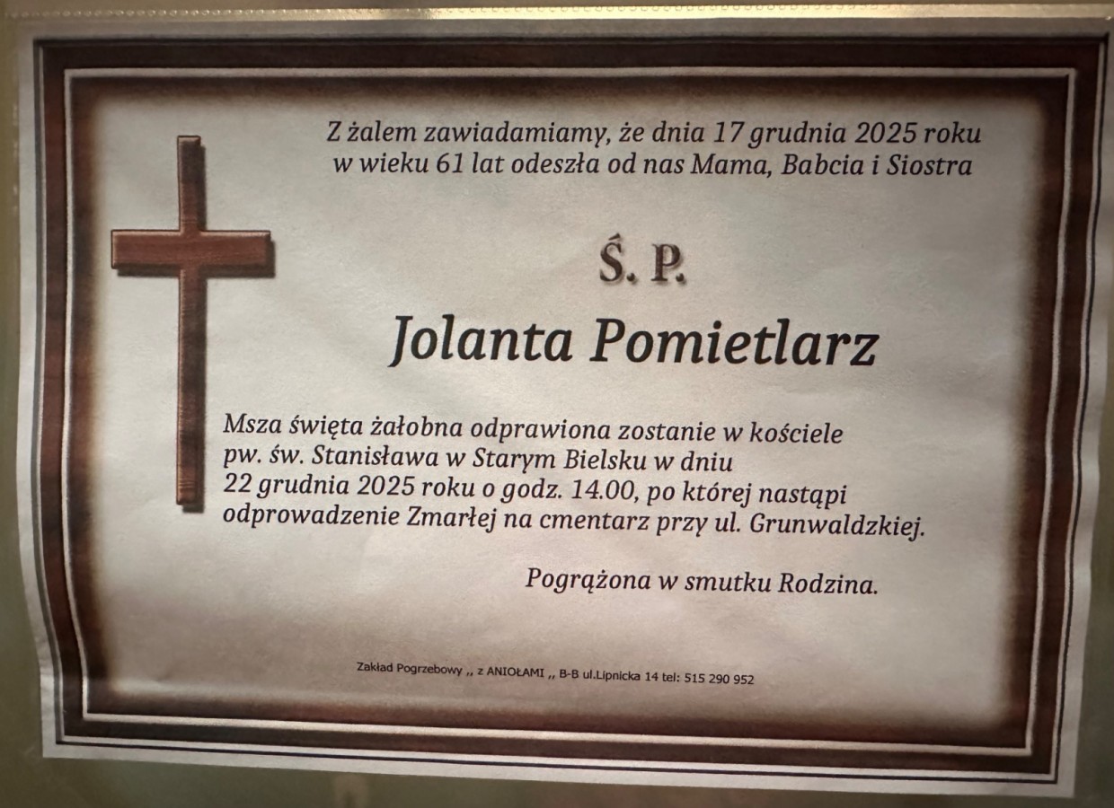 Z głębokim żalem przyjęliśmy wiadomość o śmierci