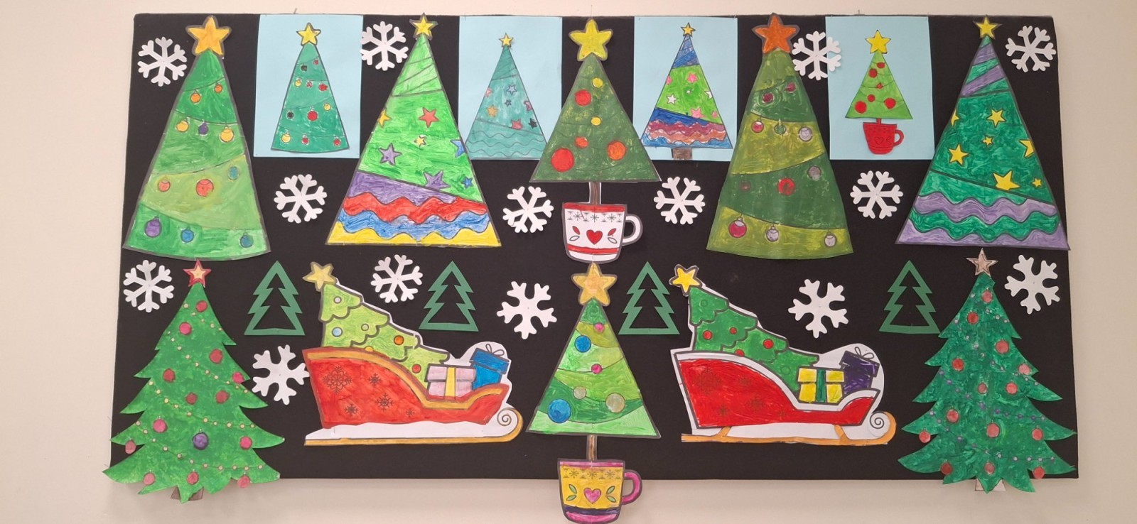 - Kolejne dni grudnia upłynęły nam na przygotowaniu zimowych dekoracji, kartek świątecznych a w drugiej połowie miesiąca na naszej gazetce rozgościły się różnorodne choinki, bombki, gwiazdy i inne świąteczne symbole.